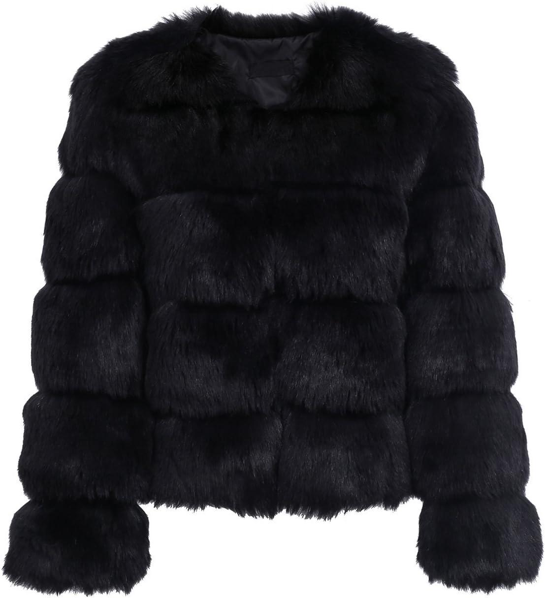 Simplee Women Luxury Winter Warm Fluffy Faux Fur Short Coat Jacket Parka Outwear(1# Black)