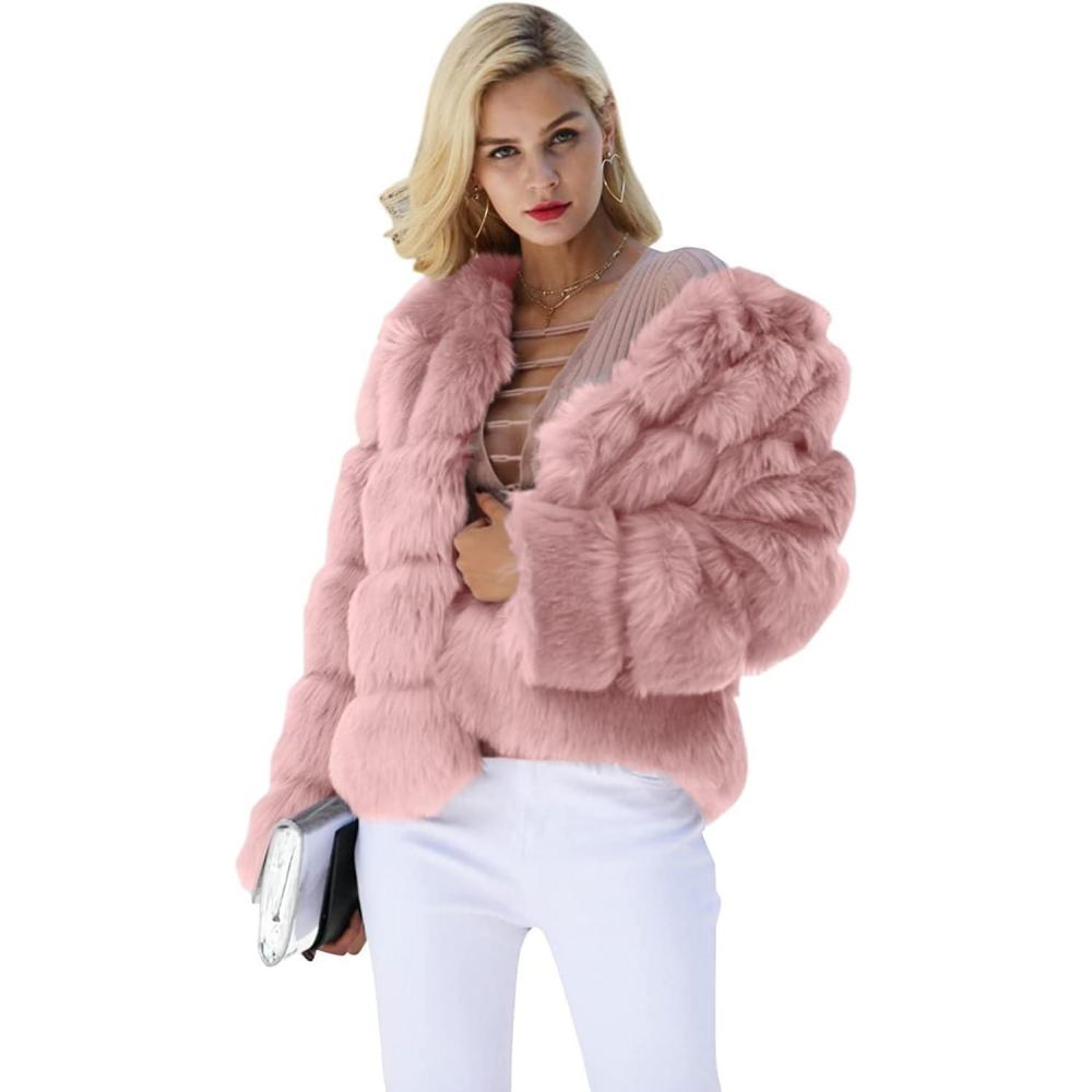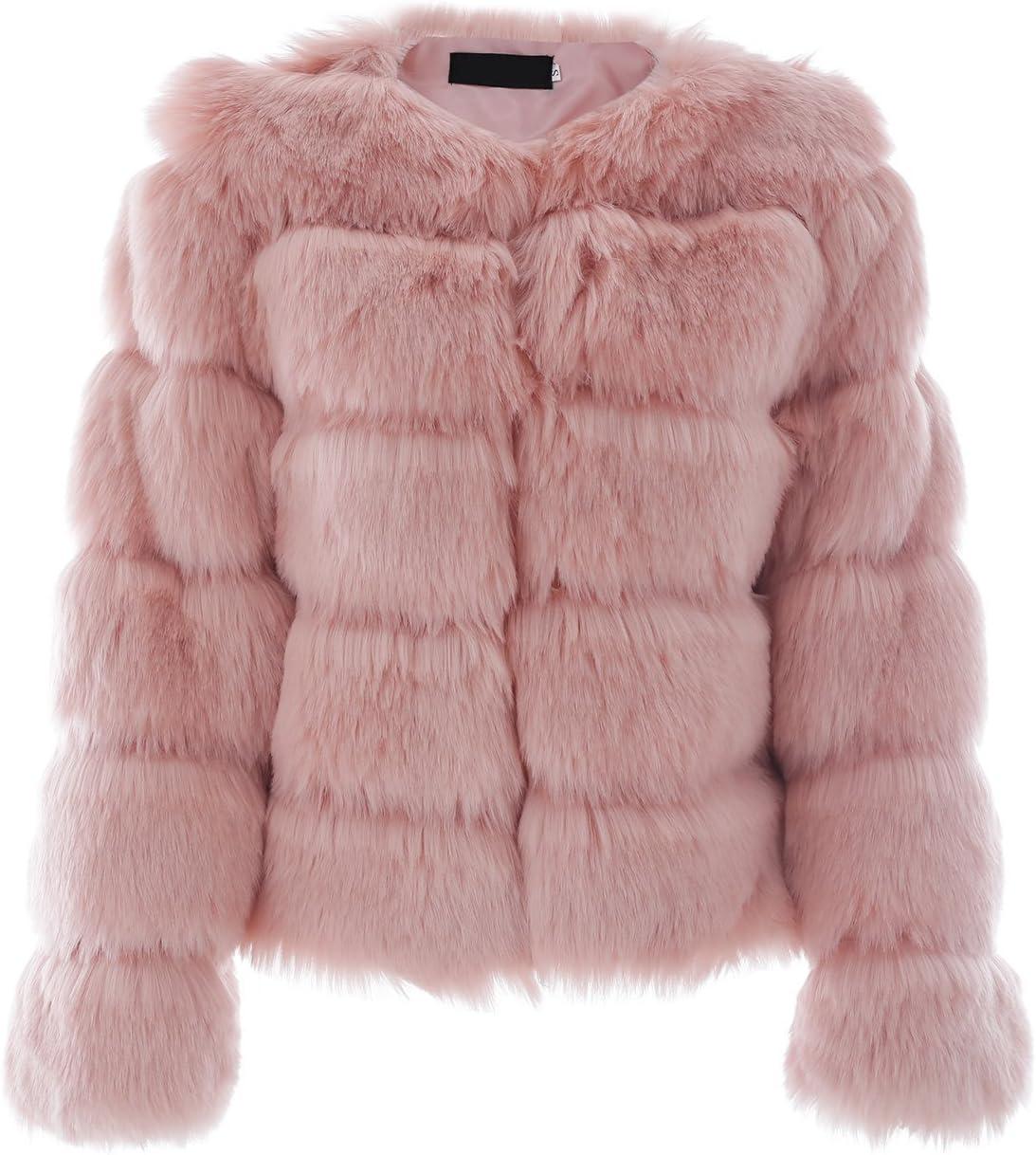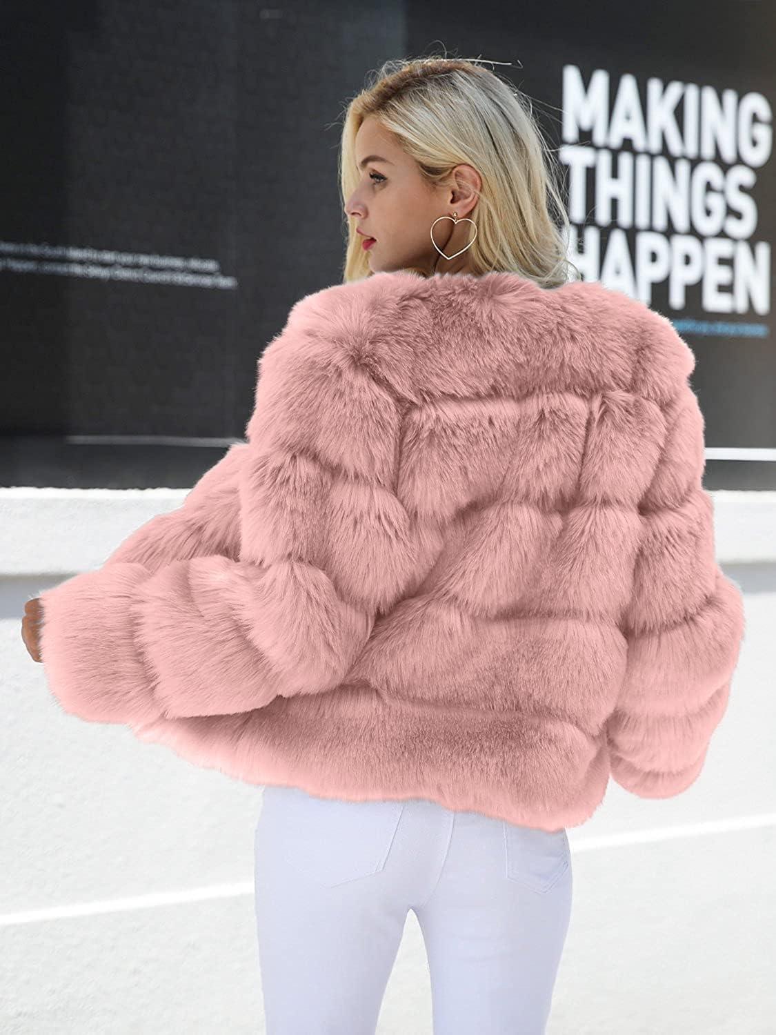 Simplee Women Luxury Winter Warm Fluffy Faux Fur Short Coat Jacket Parka Outwear(1# Pink)
