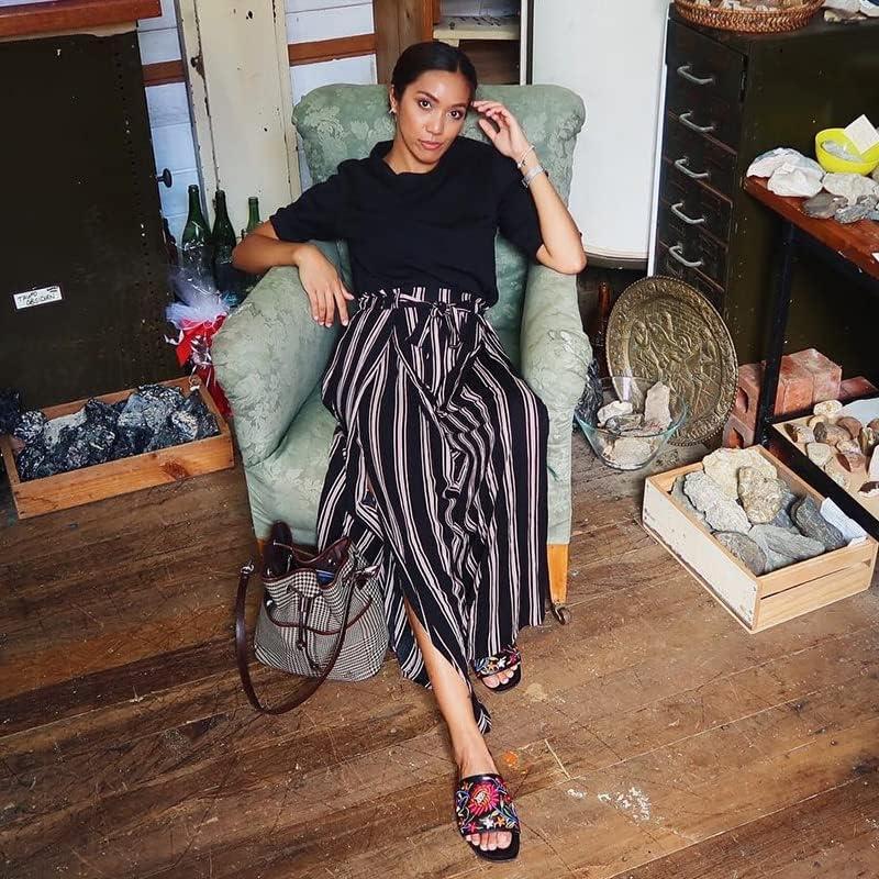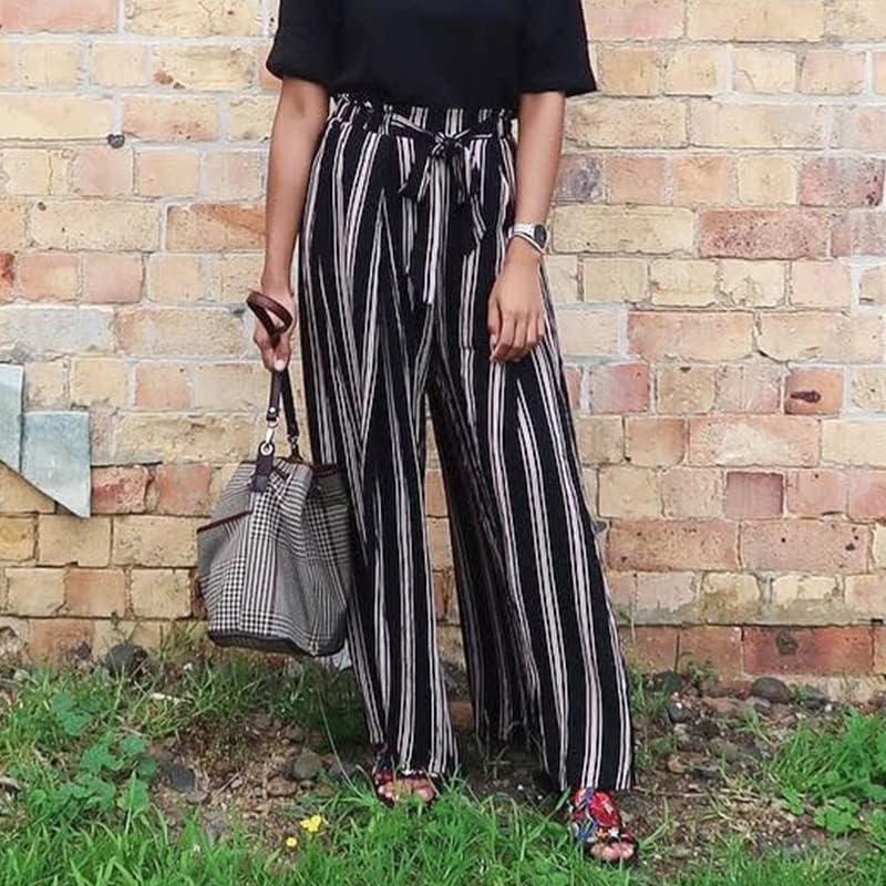 imageSimplee Womens Casual Split Wide Leg Pants High Waist Palazzo Flowy Beach Pants Summer Boho Lounge Pants with PocketsA3black Stripe
