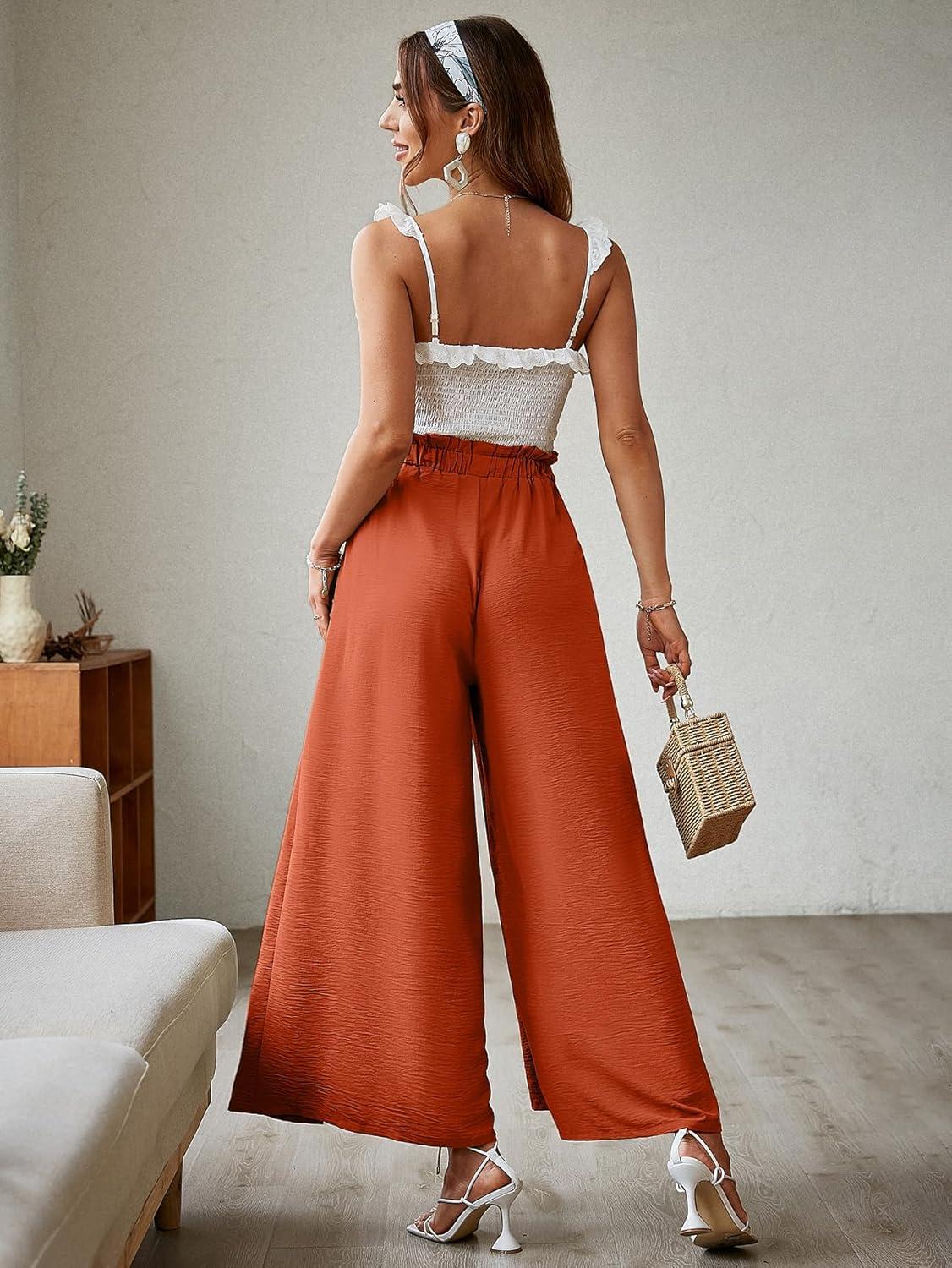 Simplee Women’s Casual Split Wide Leg Pants High Waist Palazzo Flowy Beach Pants Summer Boho Lounge Pants with Pockets(E6_rust)