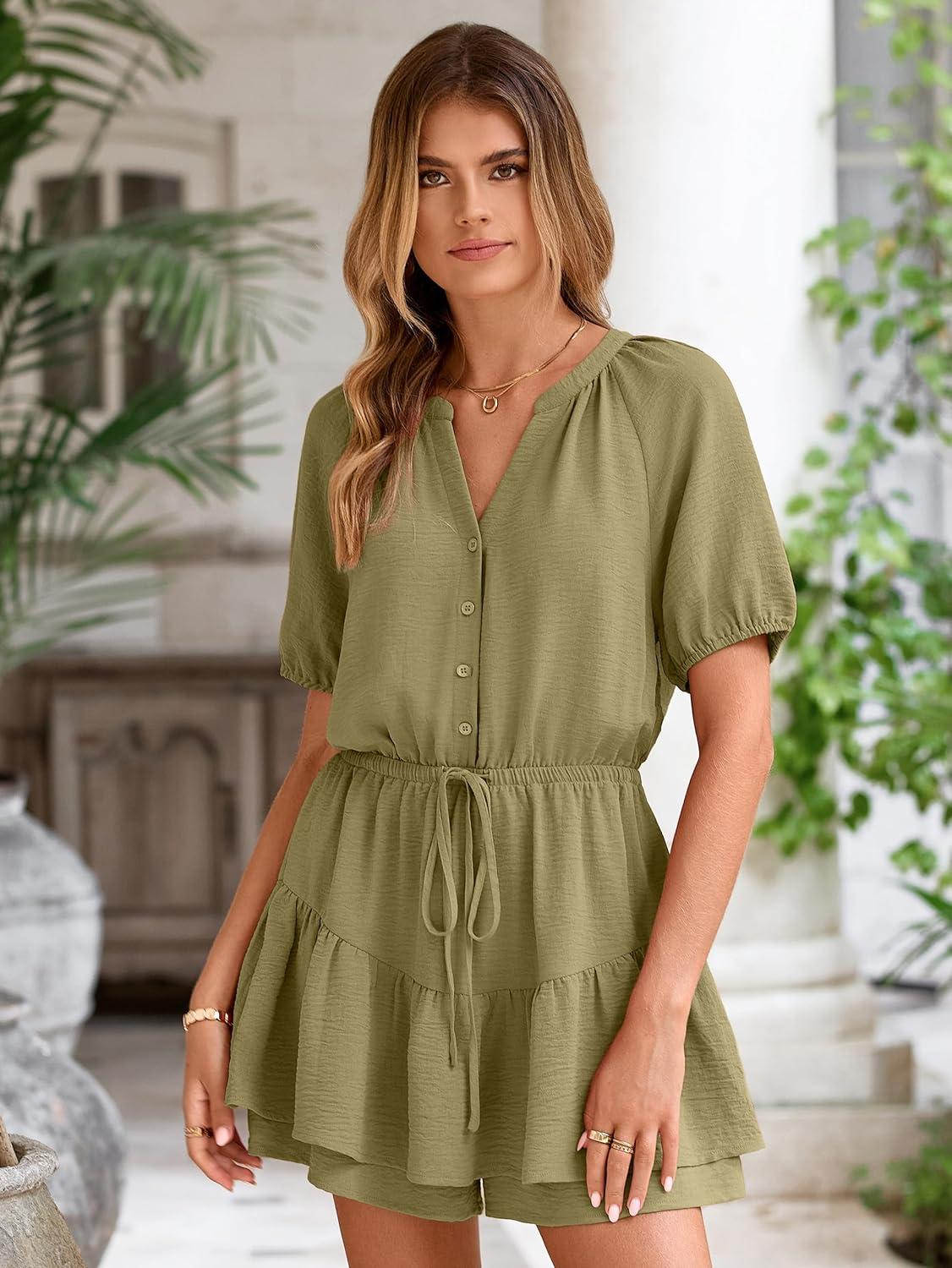 Simplee Womens Cute Summer Rompers – Casual V Neck Short Sleeve Ruffle Boho Romper Dresses Beach Outfits(Army Green)