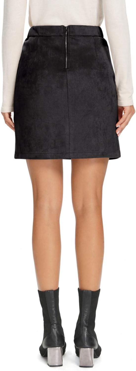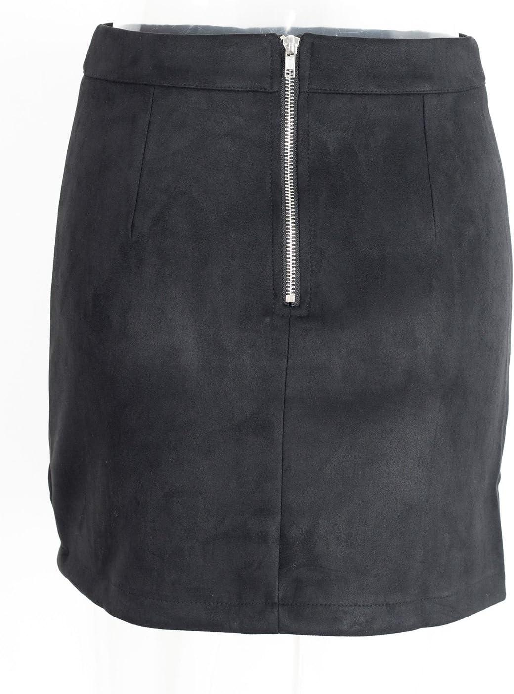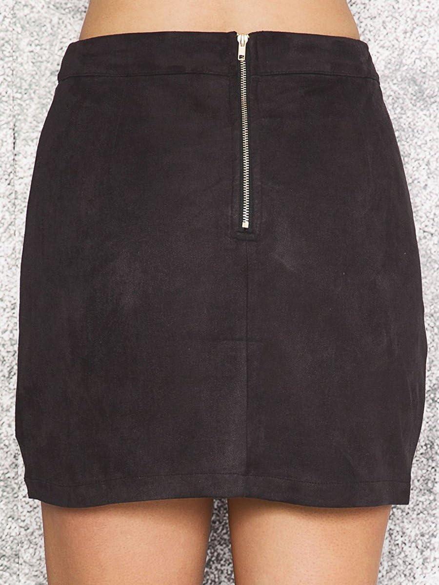 Simplee Women's High Waist Faux Suede Mini Bodycon Skirt(Black)