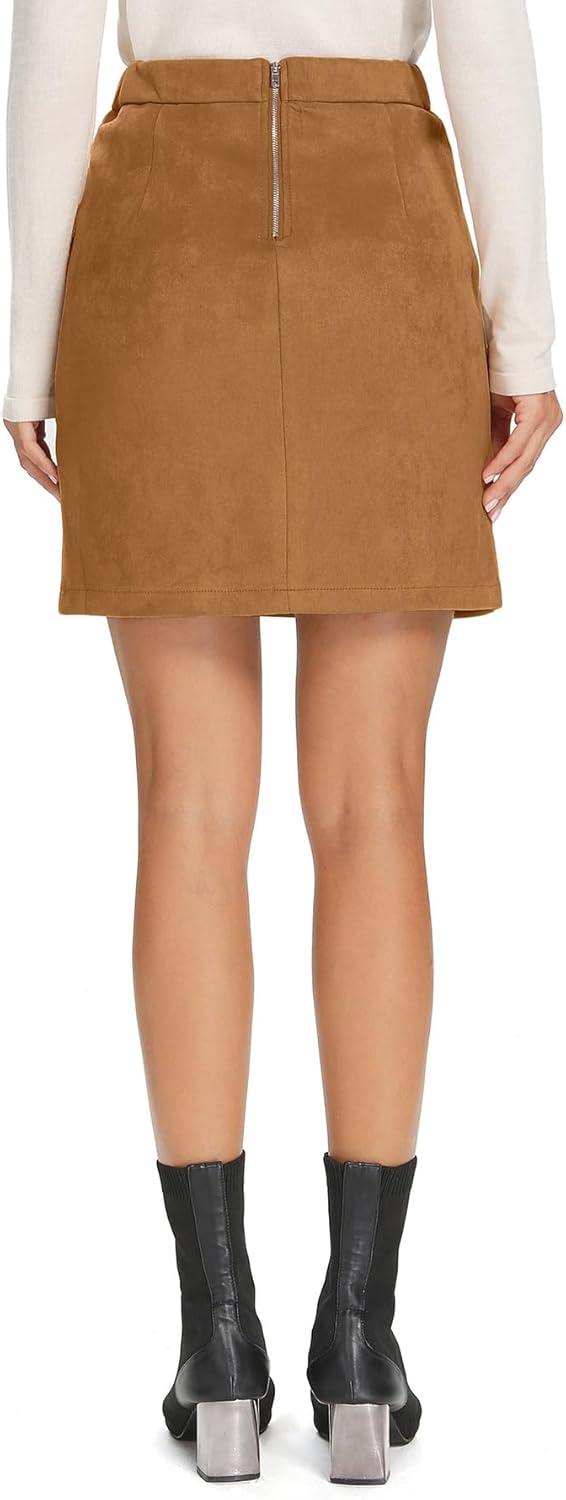 Simplee Women’s High Waist Faux Suede Mini Bodycon Skirt(Camel)