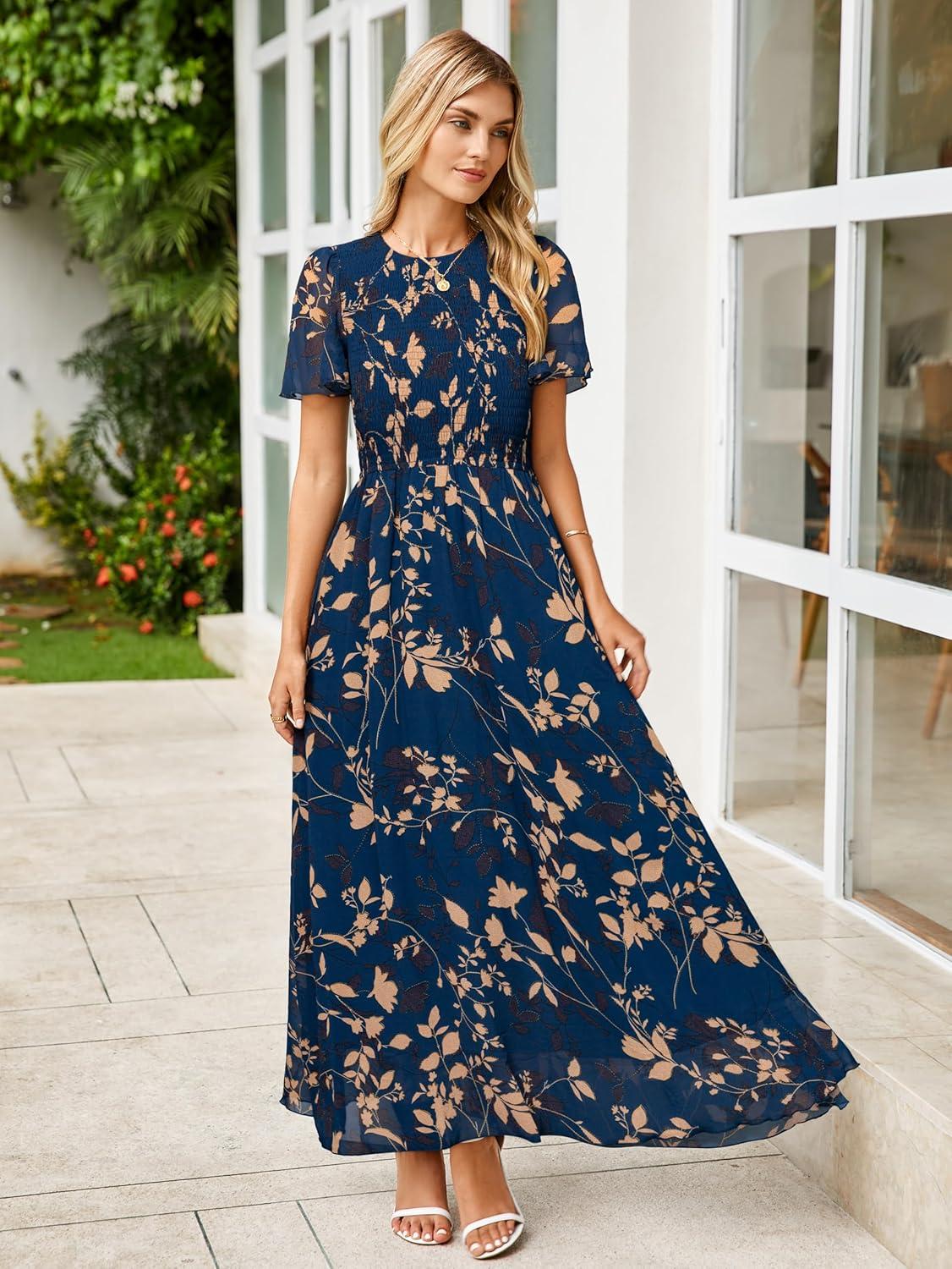 Be the first to review “Simplee Womens Summer Floral Casual Maxi Dresses Flutter Short Sleeve Crew Neck Smocked Chiffon Boho Flowy Dress(2# Navy Blue)” Cancel reply