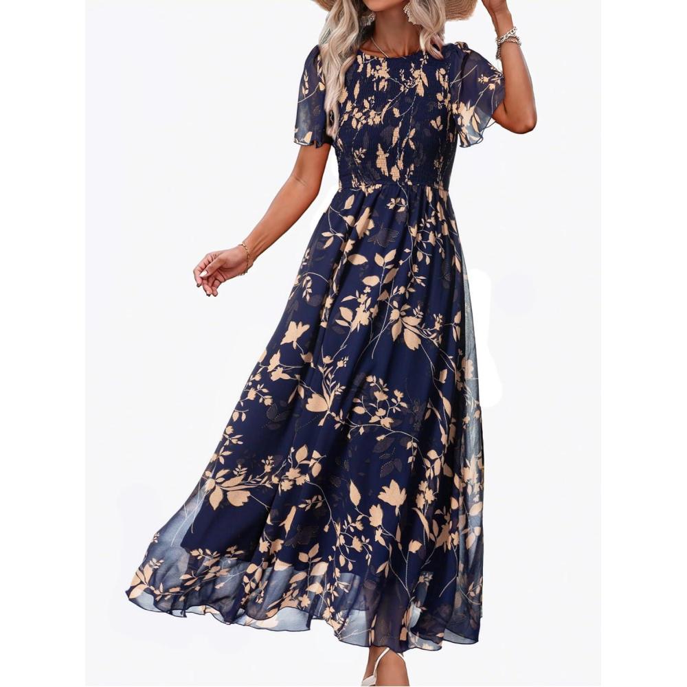 Be the first to review “Simplee Womens Summer Floral Casual Maxi Dresses Flutter Short Sleeve Crew Neck Smocked Chiffon Boho Flowy Dress(2# Navy Leaf 2)” Cancel reply