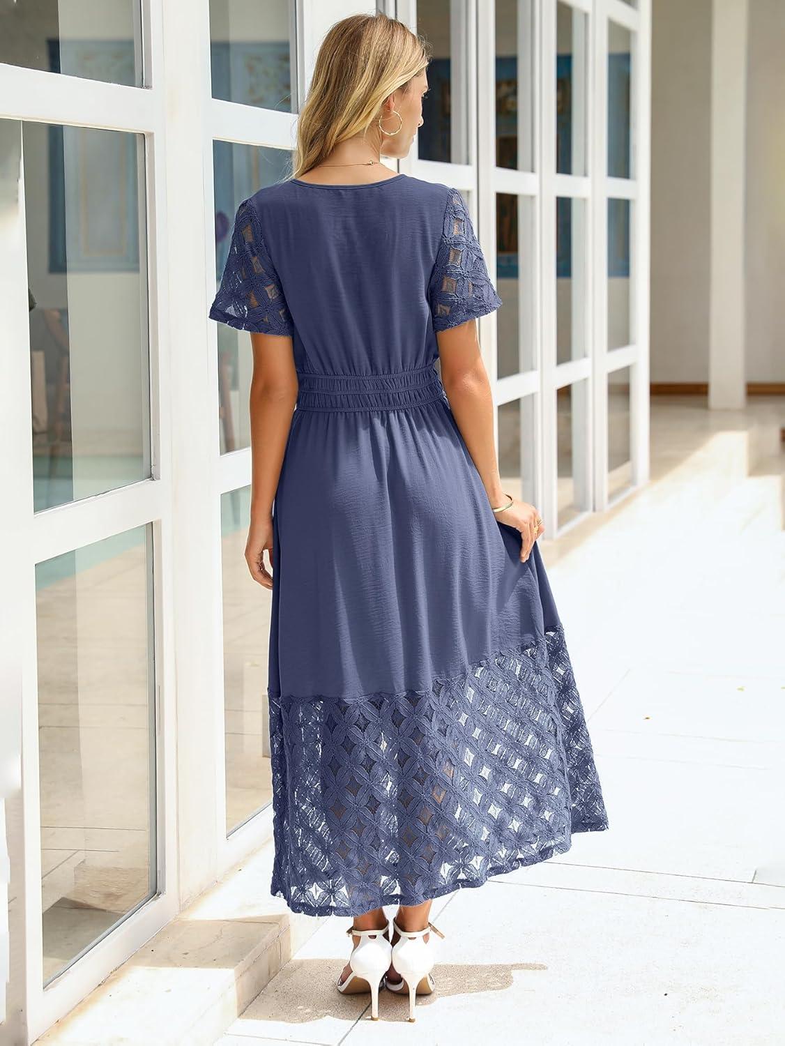 Simplee Womens Summer Maxi Dress 2026 V Neck Empire Waist Long Flowy Boho Dresses with Pockets(Blue)