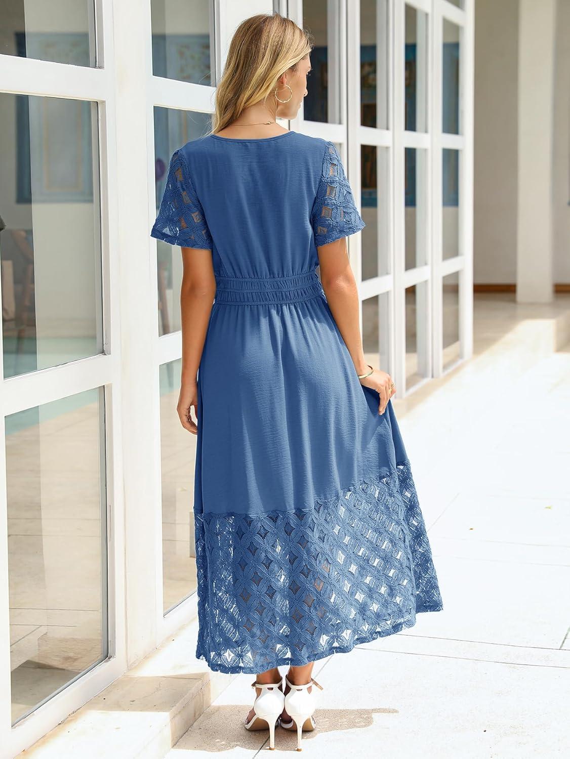 Simplee Womens Summer Maxi Dress 2026 V Neck Empire Waist Long Flowy Boho Dresses with Pockets(Blue)