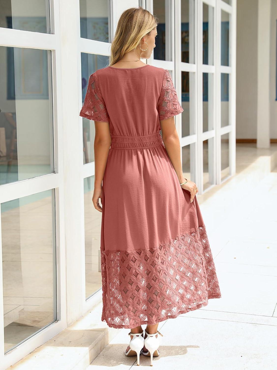 Simplee Womens Summer Maxi Dress 2026 V Neck Empire Waist Long Flowy Boho Dresses with Pockets(Rust Pink)