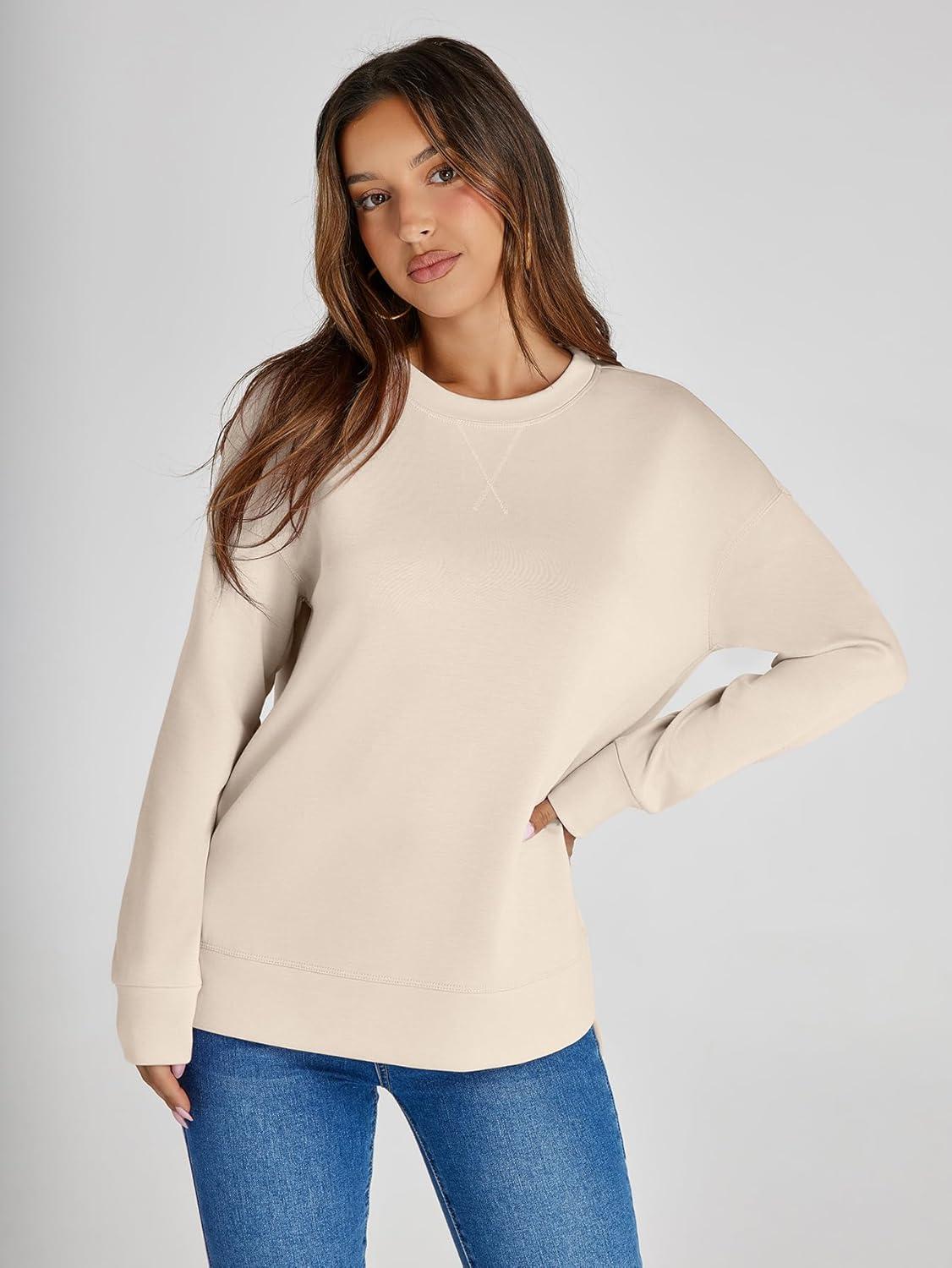Simplee Womens Sweatshirt Long Sleeve Crewneck Striped Sweatshirt for Women 2024 Trendy Fall Tops Pullover Sweatshirts(Solid-light Grey)
